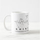 Khiry spelled out in amino acids as K H I R Y (Lysine Histidine Isoleucine Arginine Tyrosine) on a mug for the scientist in you.