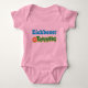 I love this onesie, it's adorable! The material is amazing so soft and the color is a perfect sky blue. When my daughter-in asked me to help with her Baby Shower, I was thrilled. It was co-ed & the theme was Cookie Monster. I had no idea that the whole world was after that big blue Monster. Thank goodness for Zazzle, I got most of the party supplies here. Then I found this onesie! They made my customization so easy. The colors are awesome. I wrote the word "Loved" across the bottom of the Cookie Monster in red letters when I was putting it together. I saw the preview & liked it. But to see it in person, OH, it was fantastic, they do exceptional work! I am so glad that I found this onesie/bodysuit. The production time and shipping were exactly what I was told, which made it easy to plan the party. Packaging was nice as well. If you are looking at this product, look no further, I highly recommend it! I'm certain that I'll be back to "design" whatever my new Grandson "needs.". The printing on the onesie/bodysuit is crisp, and clean. With perfect colors that blend well with the blue background of the basic material. We are so happy with how it came out.