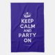 Based on the original Keep Calm and ... poster this cream and blue Keep Calm and Party On Kicthen Towel features a custom designed font that matches the original closely.