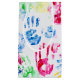 colorful child's hand print on white