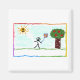 A kid-drawing of a "kid playing with a kite".