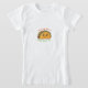 Let's Taco 'Bout It: A fun, lighthearted design with a friendly taco character, complete with toppings and a cheerful expression. It’s perfect for those who love tacos and a good pun, bringing a smile to every conversation.