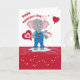 A cute Valentine's Day card for kids with cartoon elephant holding four flowers and surrounded by pink and red hearts . Personalize it ith your own text or keep it as it is .
