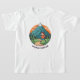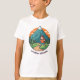 This design generated by AI describe as a young boy with his backpack running along a path towards a majestic mountain. The shirt representing a sense of adventure and exploration. The overall style is cartoonish and playful, evoking a sense of childlike wonder and excitement.