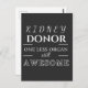 for the kidney donor, to thank them for their organ donation from the kidney recipient or even for yourself if you donated your kidney. Funny gift that says one less organ, still awesome