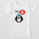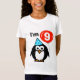 Kids 9th Birthday shirt for nine year old child. Funny penguin cartoon with red balloon and party hat. Personalizable age number, 1 2 3 4 5 6 7 8 9 etc. Fun celebration design for kid's nineth Birthday party.