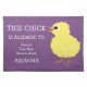 Adorable Kids Allergy Alert Easter Chick Personalized Cloth Placemat. The bright white font on a purple background states "THIS CHICK IS ALLERGIC TO:" Edit to add your allergens and child's name. Cute fluffy yellow check design for Easter time or Spring. Designs by Lil Allergy Advocates www.lilallergyadvocates.com