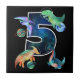 Kids Astronaut Outer Space Dinosaurs 5th Birthday Ceramic Tile