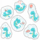 Little “baby” Nessy sticker set — imagining the Lock Ness Monster as a tot — playing with new friends, a baloon, swimming and takinga nap. Totally cute for playroom, nursery, baby shower gifts and more. Original illustrations by artist L. Diane Johnson. Merry Christmas!