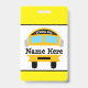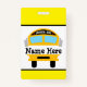 Back to School Name Tag Badge Featuring a Split School Bus Design to Add Name Personalization. Perfect for backpacks or other personal belongings. Can also be personalized to be teacher classroom badges.