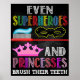 A super cute and fun reminder that even superheroes and princesses brush their teeth! Great bathroom art for at home, a pediatric dental office or daycare!