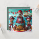 FUN SWASHBUCKLING PIRATES THEMED KIDS BIRTHDAY LAYER CAKE ON THE FRONT OF THE CARD. COMPLETELY EDITABLE COPY ON THE BACK.