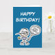 Kids birthday card with little tennis player. Children's tennis cartoon design. Create gifts for tennis players with a funny slogan, saying, quote, name or joke.