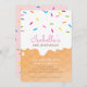 KIDS BIRTHDAY PARTY ice cream cone pink sprinkles Invitation