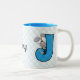 Kid's Blue Jackrabbit Monogram Letter J with Name Two-Tone Coffee Mug