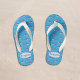Cute blue flip flops for kids with a swimming shark pattern . Add child's name using the template . Perfect for girls or boys .