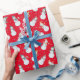 Kids Christmas Cute Snowman in Hats Red Wrapping Paper