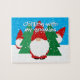 Kid's Christmas puzzle with funny red gnomes cartoon. Colorful winter Holiday design with snow and cute red trolls. Available in big and small sizes. Fun entertainment for little boys and girls. Chilling with my gnomies. Add your own funny quote optionally.