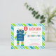 Funny Cute Kids Colorful Robot Birthday Invitation Postcard. Party invite for a robot themed birthday party. Fun blue robot with a striped background. Add your party details and send out to guests. Coordinate with other robot party supplies. www.SamAnnDesigns.com
