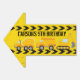 Cool custom construction excavator arrow yard sign for a child who loves yellow construction vehicles in black and yellow. Fun vehicle party decor for a little boy who loves cars and trucks. Customize with your kid's name under the black and yellow caution tape with a personalized happy birthday party signage including their name and age. Point your guests with this cute arrow signage.