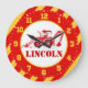 Graphic art wall clock featuring a construction tractor digger. Great to in a kids construction style bedroom. Customise with a child's name up to 7 letters.