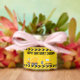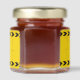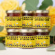 Cool custom construction excavator birthday party favor honey jjar for a child who loves yellow construction vehicles in black and yellow. Fun vehicle design for a little boy who loves cars and trucks. Customize with your kid's name between the black and yellow caution tape.