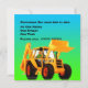 Custom Yellow Digger Birthday Party Invitations, add your own message! Looking for a special digger birthday gift? Kids love diggers, these custom digger invites have a big yellow digger on them. Add your own name or message. Ideal for the young builder or farmer in your life. Brilliant for a digger themed kid's party. Kids love diggers and building. Great for truck themed children's party. More great digger and excavator birthday and truck gifts from Paul Stickland's TruckStore. How about some fabulous MATCHING TRUCK POSTAGE? Click on the truck postage below to go and choose your favourite matching big trucks! (US only)