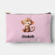 Kids cute monkey add a name pink black accessory pouch