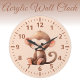 Kids cute monkey brown peach large clock