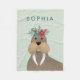 This cute kids Christmas blanket features a walrus and snowflake illustration on a green background, with a floral wreath. This lovely whimsical and stylish design also features a place for you to add your girl's name. The perfect holiday blanket design for any winter animal lover!