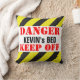 Original fun graphic kids sign pillow for boys. Perfect for a construction styled boys bedroom particularly if sharing a room. Reads Danger Kevin's Bed keep off. Graphic designed by Sarah Trett.