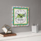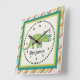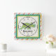 Personalize this ccolorful square wall clock featuring a cute tricerotops for a special child's room. Just edit his or her name in the easy Zazzle text editor with a simple step. Created in green, teal, orange and black color accents.