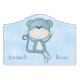Adorable Personalized child's room / nursery door sign with a baby Blue molted background, lovable Blue Monkey. Customize the the background color, name, or add your own text. This door sign makes a great addition to your special child's nursery! All our products can be custom designed to meet your needs at no extra charge. Simply contact us through our store. Coordinating products available: Just ask us!