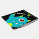 Bold graphic one eyed friendly teal aqua and lime green alien waving bag on a black background. Ideal for children to take to school or for sleep overs and trips out. Personalize with your kids name currently reads Jasper. Original art and design by Sarah Trett.