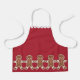 Great color and even though I ordered the kid size, it covers well enough to use during the holidays. I am not a big woman and prefer a shorter apron. I stand 5"6" and the length of the garment goes to mid-thigh. The tie straps fit well at my waist and even though there is no neck strap adjustment, the opening is plenty big enough. I am happy with the size and fit. I am sharing my apron with my 10 year old grandson, too! The color is vibrant and looks good, as shown on the website. The stitching looks strong and reinforced. Photographed is front side and back side of the apron, reinforced straps and coloring. My phone camera may not be the best at showing the details.