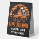 Greet your guests with this fun table tent sign on Halloween night or for daytime trick-or-treating. Add details like time and date to personalize.