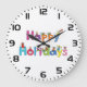 Kids Happy Holidays Stick Figure Typography Large Clock