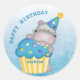 Kids Hippo Birthday Cupcake Sprinkles Personalized Classic Round Sticker