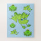 This kids jigsaw puzzle is shown with a cute frogs print design.