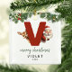Kids Letter V Monogram Christmas Tree Metal Ornament