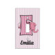 For the Girl who's name starts with an E for Elephant! Done in sweet pink hues with fun striped prints. Great for nurseries or girl's rooms.