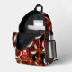This cool basketball backpack features a random pattern of varied size basketballs turned every which way on a black background - each of the basketballs in the pattern has two recolored panels--one red and one white - customize with the athlete's monogram - by katz_d_zynes