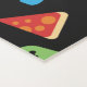 Kids Personalized Video Game Tech Party Snacks Yoga Mat. Pattern with video game controllers, headphones, donuts, ice cream, pizza, burgers and fries on a black background. Personalize with name and initial. Fun gamer and desserts pattern. www.SamAnnDesigns.com