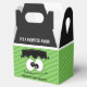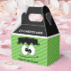 Kids Monster Birthday Party Favor Boxes, Halloween Favor Box. Celebrate your party with this cute Frankenstein Monster Mash party favor box! This gable style favor box has a green stripe background with a cute Frankenstein face and head where you can personalize the saying at the bottom to fit your Halloween event. The gable of the favor box is black with the wording "It's A Monster Mash".