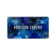 These kids' name galaxy space school supplies labels have a swirled blue, green and black galaxy background with glowing stars. Just personalize the name in simple white typography.