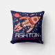 Kids name rocket space explorer navy red pillow