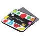 Fun colorful element shapes in red balloon, gold crown, yellow banana, blue sailboat and more. Name in white against geometric rectangle with the look of black chalkboard outlined in sky blue. Kids wallet for pretend money and cards or photos, or to bring their lunch money or check to school cafeteria (our child loved doing that and helps teach some responsibility). Original Design by TamiraZDesigns.