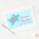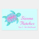 Kids sea turtle whimsical watercolor art id name stickers customize with your own full name and class / teachers name or subject. This example reads: Sienna Fletcher Year 3 Mrs MacDonald. Cute sticker perfect for school books. Uniquely painted and designed by Sarah Trett.