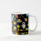 A colorful outer space mug for kids with astronauts, rockets, aliens, stars, ufos and planets all on a black milky-way photographic background. Ideal as a birthday gift for your grandson or other family member or friend. Add your own message at the bottom which currently reads - "happy 7th birthday Conor"