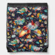 A Colorful Drawstring Backpack For Kids Of A Cartoon Illustration Of Outer Space For Either A Boy Or Girl